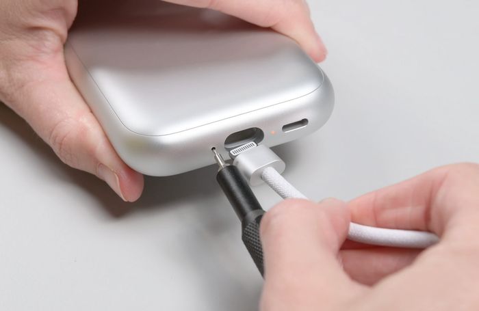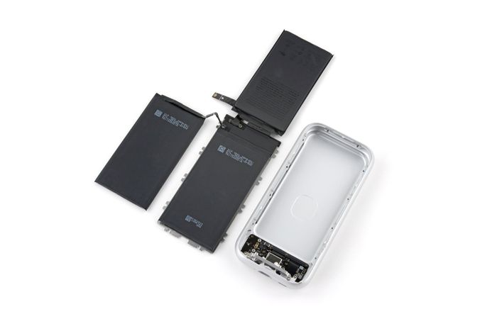Trong cục pin, có 3 tấm pin bên trong, tương đương với số lượng trên iPhone 15 Pro. Trọng lượng của pin chỉ là 184 gram, trong khi cả cục pin là 353 gram. Vỏ pin làm từ kim loại, không rõ mục đích nhưng có thể là để bảo vệ và tăng giá thành.