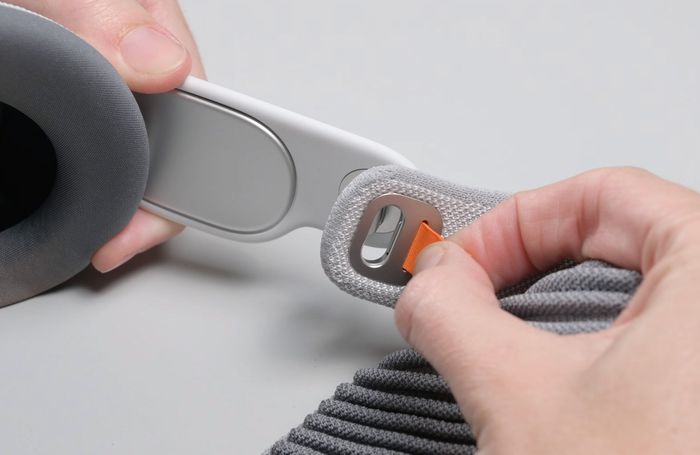 Khu vực tai nghe cũng kết nối với kính thông qua cổng lightning đặc biệt, chỉ cần sử dụng cây chọc sim để nhẹ nhàng tháo ra.