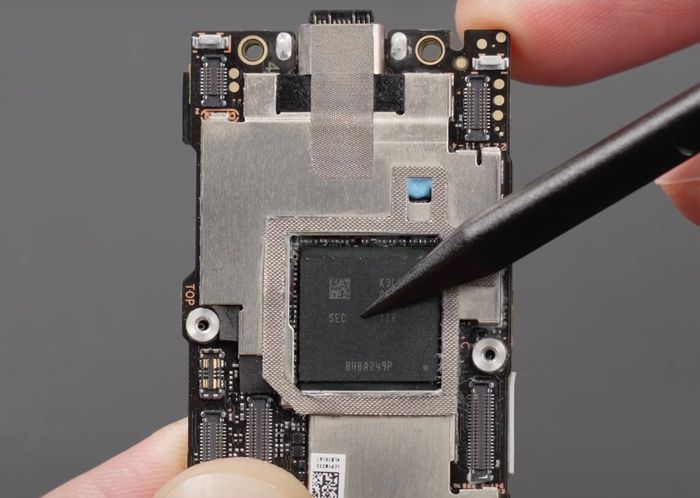 Khi tháo bỏ tấm kim loại bảo vệ, chúng ta sẽ phát hiện thêm ROM UFS3.1 được cung cấp bởi Hynix.