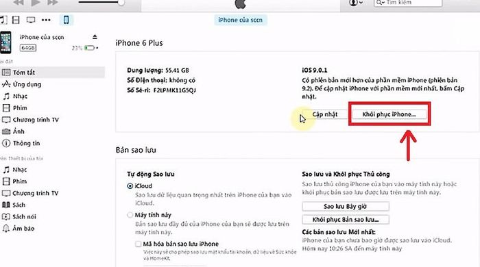 Thực hiện việc khôi phục iPhone thông qua ứng dụng iTunes