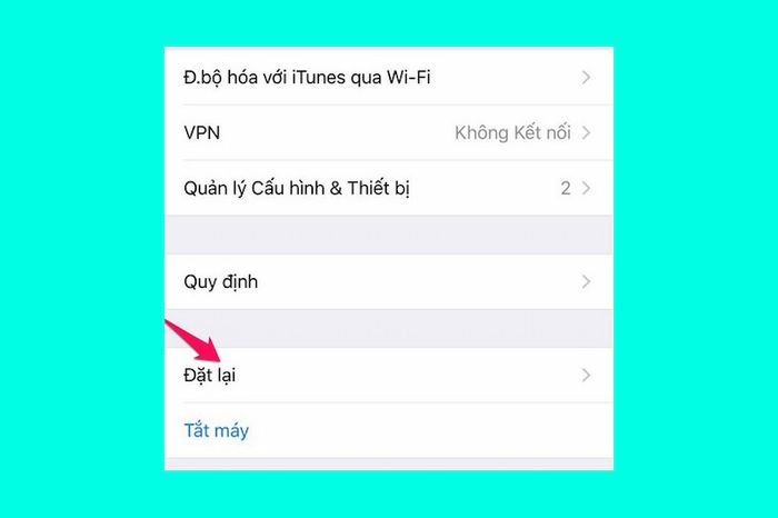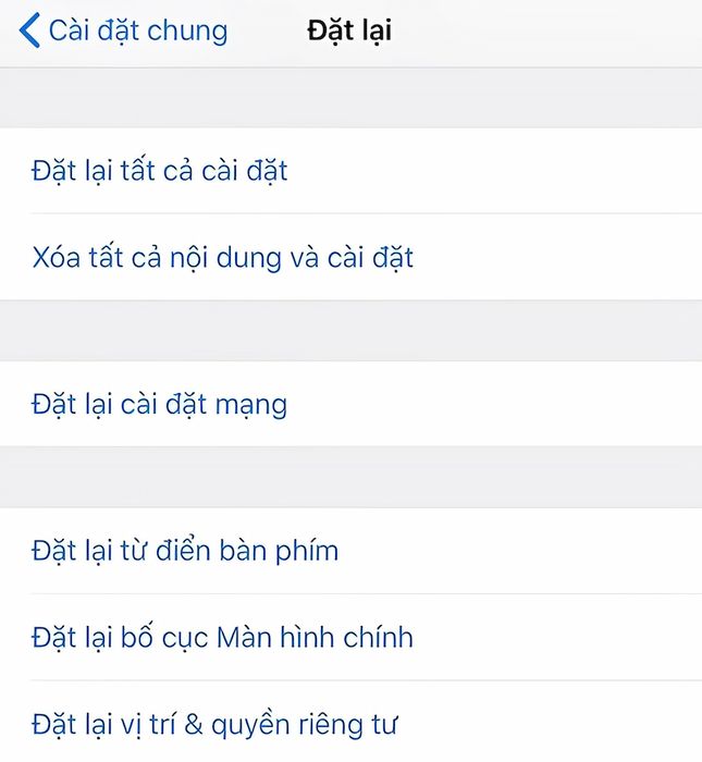 Quay trở lại Cài đặt => Chọn Cài đặt chung (General) => Chọn khôi phục cài đặt (reset)