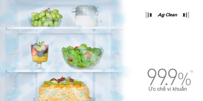 - Công nghệ Ag Clean: Hiệu quả kháng khuẩn và loại bỏ mùi trong thực phẩm, sử dụng các ion Ag+ giải phóng. Giữ cho không khí trong tủ luôn tươi mới và sạch sẽ.