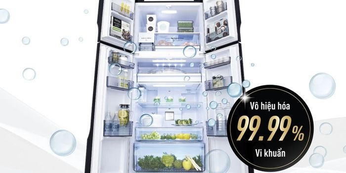 - Công nghệ Nanoe X độc đáo: Tạo ra gốc hydroxyl từ nước và phân tán khắp không gian tủ lạnh. Tích cực ngăn chặn 99,99% vi khuẩn và khử mùi, đồng thời giảm dư lượng thuốc trừ sâu. Thực phẩm được bảo quản tươi mới và an toàn.