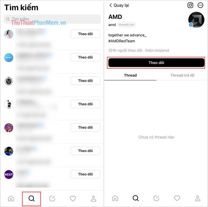 5. Cách tìm kiếm và theo dõi người khác trên Threads