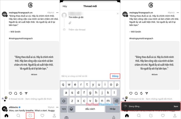 Threads cho phép bạn chia sẻ nội dung văn bản, hình ảnh, video mà không mất phí. Để đăng bài viết trên Threads, bạn thực hiện như sau: