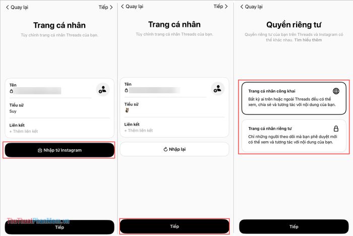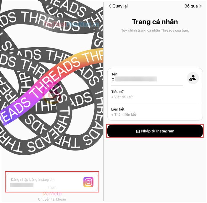 Nếu bạn muốn tiết kiệm thời gian, chỉ cần lựa chọn Nhập từ Instagram để chép thông tin từ Instagram sang tài khoản Threads.