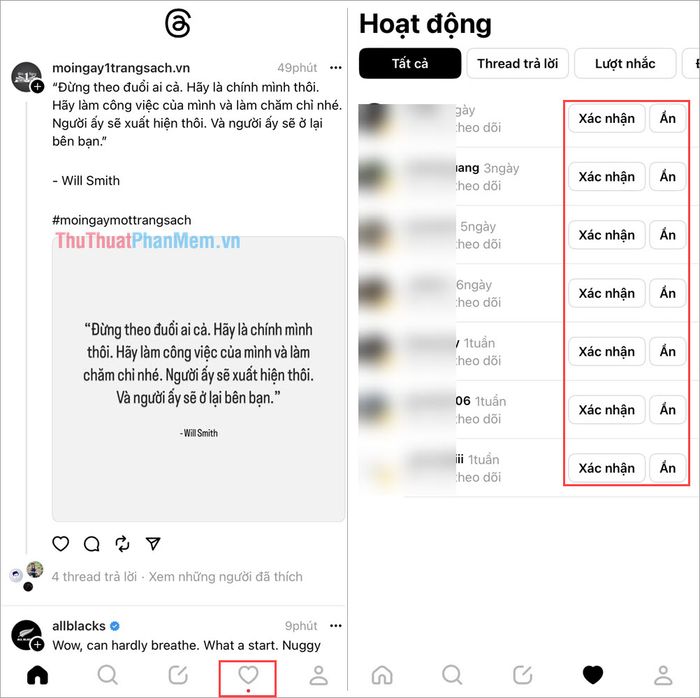 Bước 2: Xem danh sách người yêu cầu theo dõi và lựa chọn Xác nhận hoặc Ẩn theo ý muốn cá nhân.