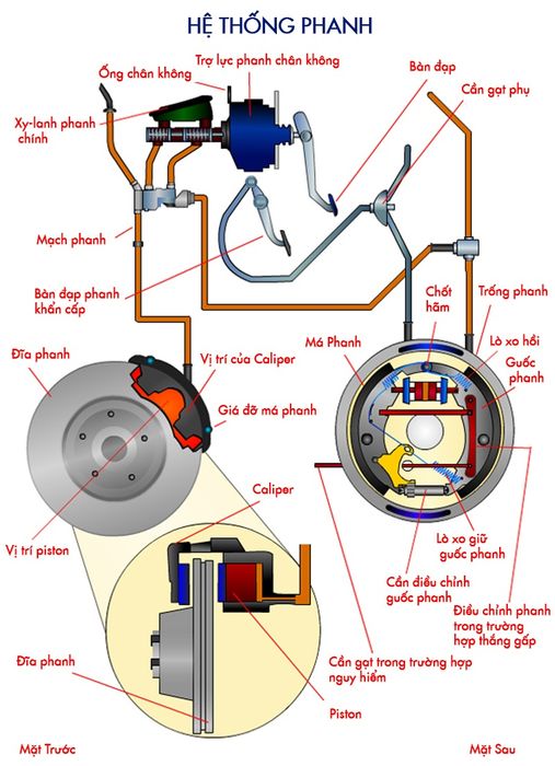 Dưới đây là chi tiết về hệ thống phanh ô tô, mong rằng những thông tin này sẽ giúp tài xế có thêm kinh nghiệm hữu ích khi lái và điều khiển xe ô tô.