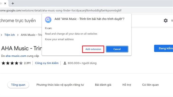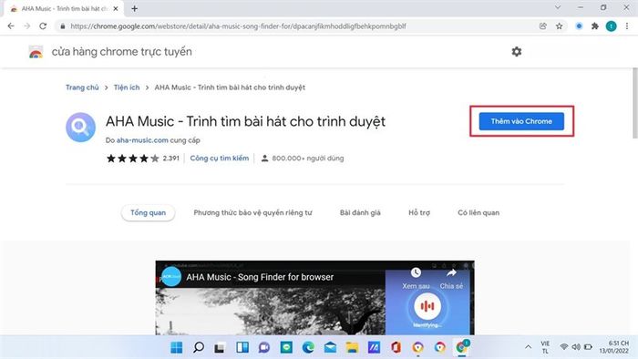 Bước 1: Tiến hành cài đặt tiện ích AHA Music cho Chrome từ Cửa hàng Chrome trực tuyến theo đường link dưới đây > Thêm vào Chrome.