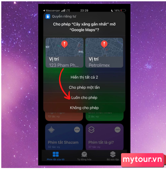 Đây là hướng dẫn về cách lưu, xóa, tìm kiếm và kiểm tra thời gian hoạt động của cây xăng gần nhất mà Mytour chia sẻ. Các mẹo này sẽ giúp bạn khi cần thiết nhé.- Khám phá thêm về các bài viết: Mẹo iOS, Mẹo Android.