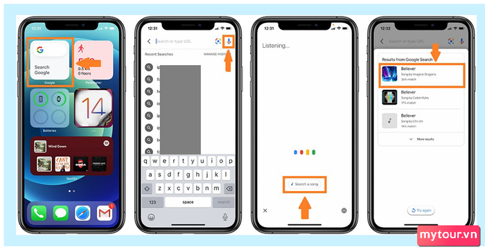 Nếu muốn, sử dụng ứng dụng Google trên điện thoại để tìm bài hát qua giai điệu với tính năng tìm kiếm bằng giọng nói! Chỉ cần mở ứng dụng > chạm vào