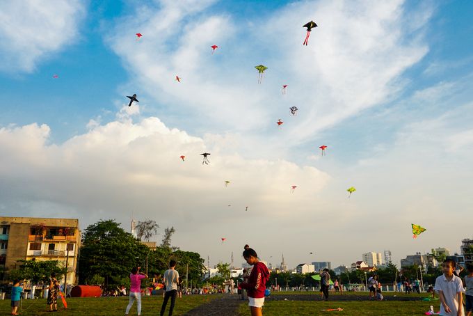 Bầu không khí hối hả của cánh đồng diều ở trung tâm Sài Gòn