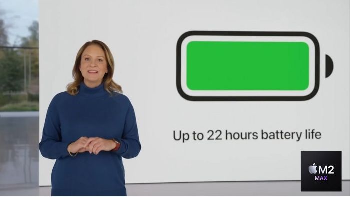 M2 Max làm tăng hiệu suất và giảm tiêu thụ năng lượng, giúp MacBook Pro đạt thời lượng pin kỷ lục. Điều này giúp giảm thời gian cắm sạc và tiết kiệm năng lượng hơn khi sử dụng.