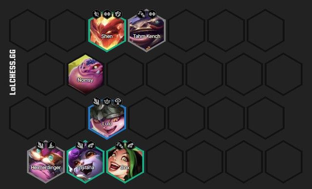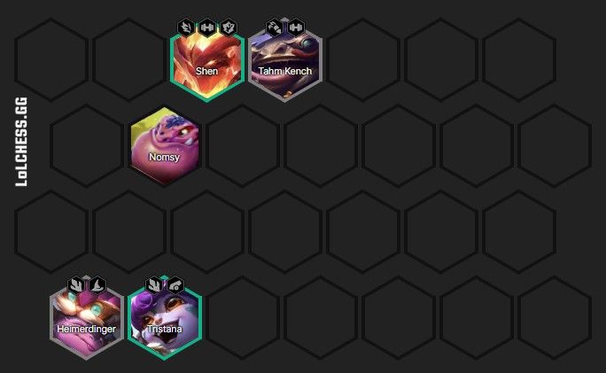 Xây dựng đội hình, sở hữu Tahm Kench từ sớm, chọn đội hình 2 Đấu Sĩ - 2 Pháo Thủ hoặc 2 Luyện Rồng - 2 Pháo Thủ tùy vào 'nhân phẩm'. Tristana là unit cầm item tốt nhất cho Corki ở đầu trận nếu sở hữu trang bị gây damage từ sớm.