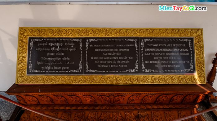 Bia ghi chép lịch sử xây dựng chùa Khmer Cần Thơ