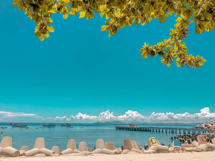 Chụp hình tại cầu cảng là hoạt động không thể bỏ qua khi đến Cù Lao. Cầu gỗ này được xây dựng từ năm 2001, có chiều dài khoảng 80m, chạy dọc ra biển. Nơi đây là thiên đường sống ảo với cảnh biển hòa quyện với bầu trời xanh biếc, một phiên bản “Maldives của Việt Nam”.