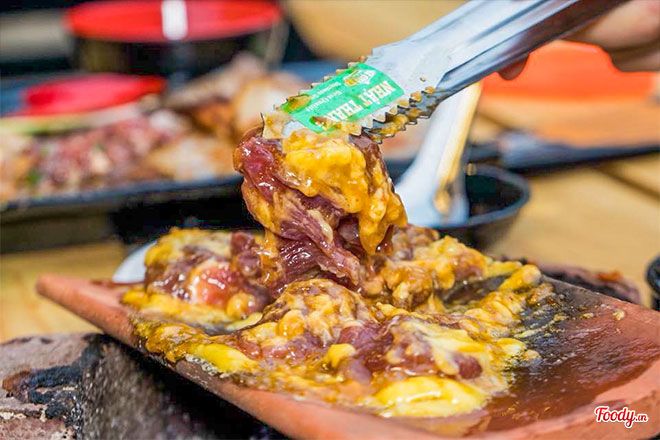 Bò nướng phủ phô maiKhác biệt so với các loại bò nướng khác, bò nướng phủ phô mai là một lựa chọn đặc biệt hấp dẫn. Khi nướng, bò không tiếp xúc trực tiếp với lửa nên không bị cháy và giữ được hương vị tự nhiên ngọt ngào. Vị thơm đặc trưng của bò kết hợp với phô mai béo ngậy tạo nên một trải nghiệm vị giác đặc biệt. Thêm chút sốt muối tiêu xanh, bạn sẽ có một trải nghiệm thú vị với món bò nướng phủ phô mai chưa từng thấy!