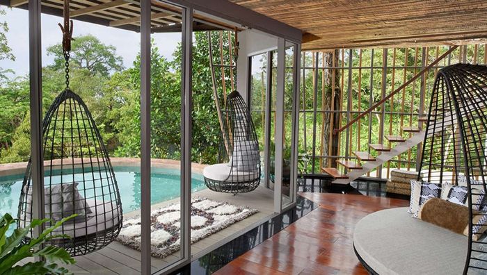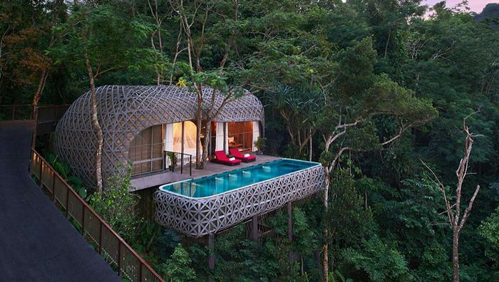 Những căn nhà trên cây có 2 tầng, ban công và hồ bơi riêng. @ Keemala