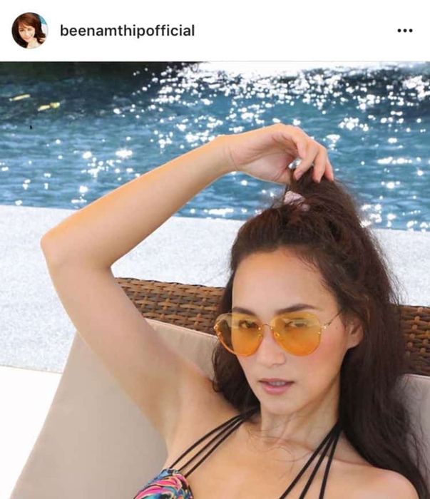 Bee Namthip thích thú tận hưởng khoảnh khắc thư giãn bên bờ hồ bơi.