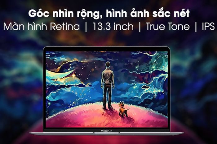 Laptop RAM 16 GB và ổ cứng SSD 256 GB giúp đa nhiệm mượt mà. Màn hình Retina với độ phủ màu 125% sRGB, độ sáng 400 nits và công nghệ True Tone, hứa hẹn trải nghiệm hiển thị màu sắc chân thật.