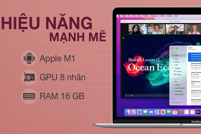 Cấu hình chạy đa nhiệm mạnh mẽ với chip Apple M1 và RAM 8 GB, thích hợp cho đồ họa và game online; ổ cứng SSD 512 GB đảm bảo lưu trữ thoải mái. Hệ điều hành Mac OS với nhiều ứng dụng phong phú nâng cao trải nghiệm người dùng.