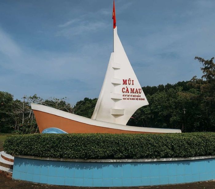Một hình ảnh biểu tượng khác là chiếc thuyền đá được gọi là Mũi Cà Mau. Bức tranh pano được tạo năm 2003, lấy cảm hứng từ những câu thơ của thi sĩ Xuân Diệu khi ông đặt chân đến đây: