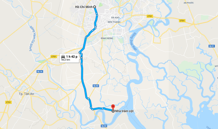 Từ trung tâm Thành phố Hồ Chí Minh, chỉ cách khoảng 50km, du khách sẽ mất chưa đầy 2 giờ lái xe để đến. Đối với những người chưa rõ đường đi, hãy tham khảo ngay tuyến đường sau đây.