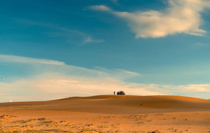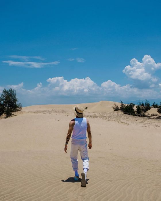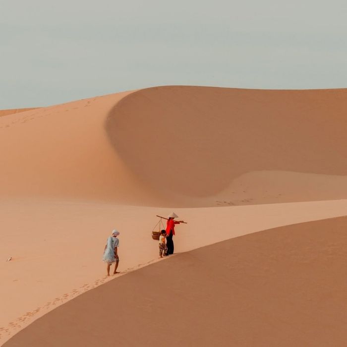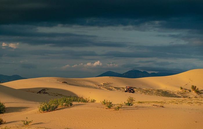 Đồi cát Nam Cương không chỉ đẹp như dải lụa mềm mại trong nắng gió, mà còn thay đổi màu sắc theo thời gian. Mỗi góc nhìn mang đến một mảng màu mới, từ sáng đến tối, từ đậm đến nhạt.