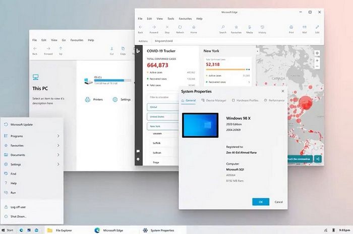 Ý tưởng này được thực hiện và chia sẻ bởi Zee-Al-Eid Ahmad Rana. Anh chàng này đã thử áp dụng thiết kế Fluent Design từ Windows 10 xuống Windows 98. Bên cạnh đó, một số phần của giao diện người dùng (UI) đã được tùy chỉnh như Windows Explorer, thanh Start menu, trình duyệt Internet Explorer (tức Microsoft Edge trên Windows 10).