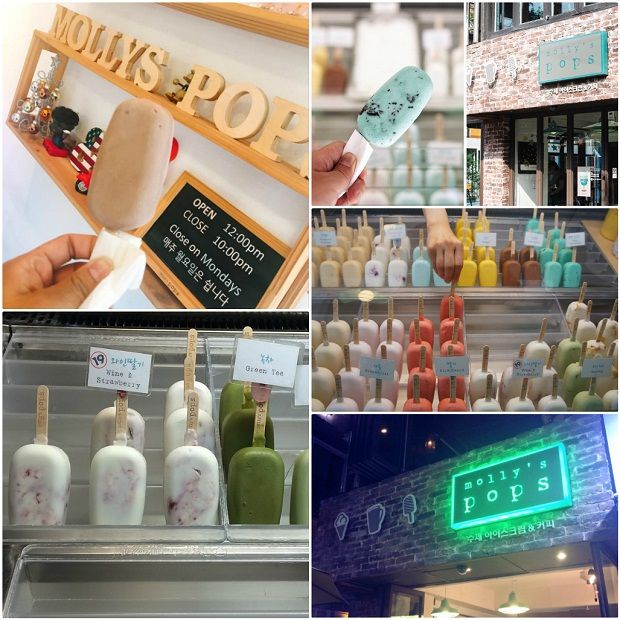 Bạn đã từng thưởng thức kem có hương vị cồn như: Baileys, bia, rượu vang chưa? Nếu chưa, hãy không bỏ lỡ trong chuyến du lịch Hàn Quốc này! Molly’s Pops chỉ phục vụ 18 loại kem mỗi lần, và nếu có loại thứ 19, nó sẽ được làm từ các loại nước uống có cồn. Bạn sẽ thích thú khi thưởng thức những viên kem có hương vị trái cây tươi mát và những loại kem độc đáo như: wasabi, bánh gạo, các loại đậu, cheese… Kem ở đây thường không quá ngọt nên không chỉ được người dân Seoul yêu thích mà còn được du khách đánh giá cao.