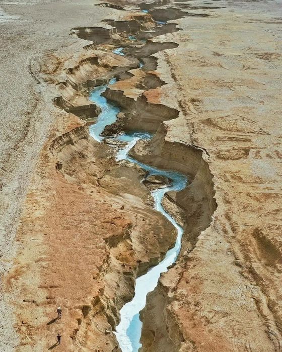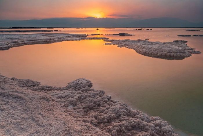 Mặc dù gọi là Hồ Chết, thực tế đây là một hồ nước mặn, nằm ở biên giới giữa Israel và Jordan. Khoảng 3 triệu năm trước, khu vực này là một vịnh hẹp, mở ra Biển Địa Trung Hải, tạo ra các lớp muối. Sau đó, do sự chuyển động địa chất, vịnh trở thành một hồ nước lớn.