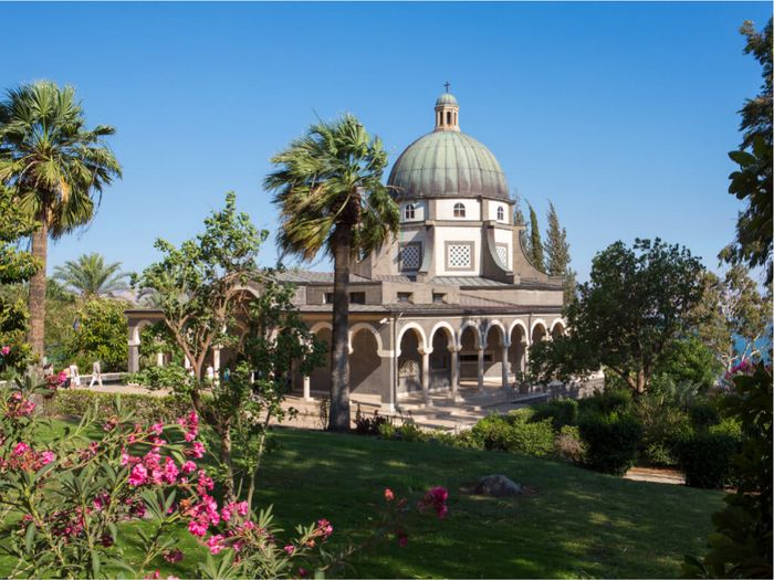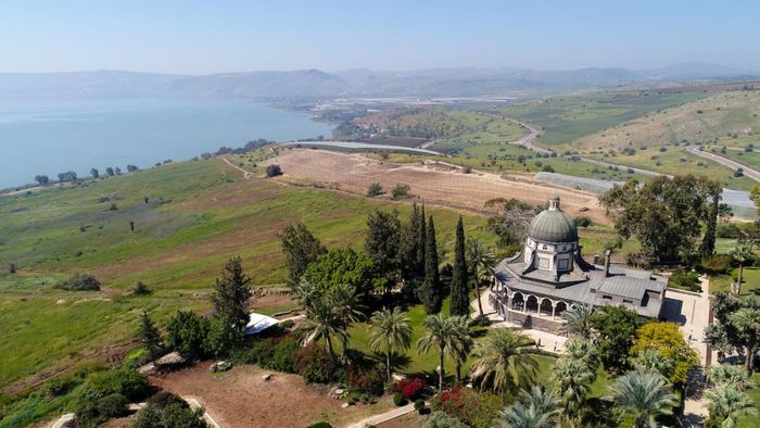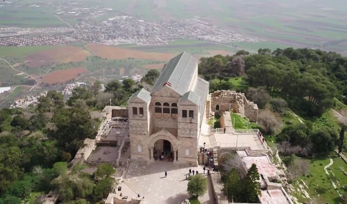 Nhà thờ này nằm trên đỉnh đồi (còn được gọi là núi Eremos hoặc núi Tám Mối Phúc Thật) giữa Tabgha và Capharnaum, nơi Chúa Giêsu đã tổ chức bài giảng nổi tiếng “Tám Mối Phúc Thật”. Cả Đức Giáo hoàng Phaolô VI và Giáo hoàng Gioan Phaolô II đã đến đây để cử hành Thánh lễ khi họ thăm đất Thánh.
