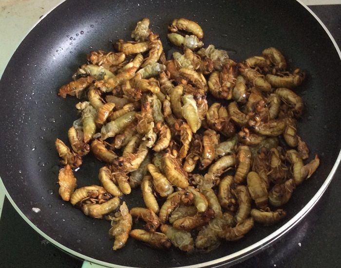 Nguyên liệu chính là những chú ve sầu sữa vừa lột xác. Hình ảnh: saostar