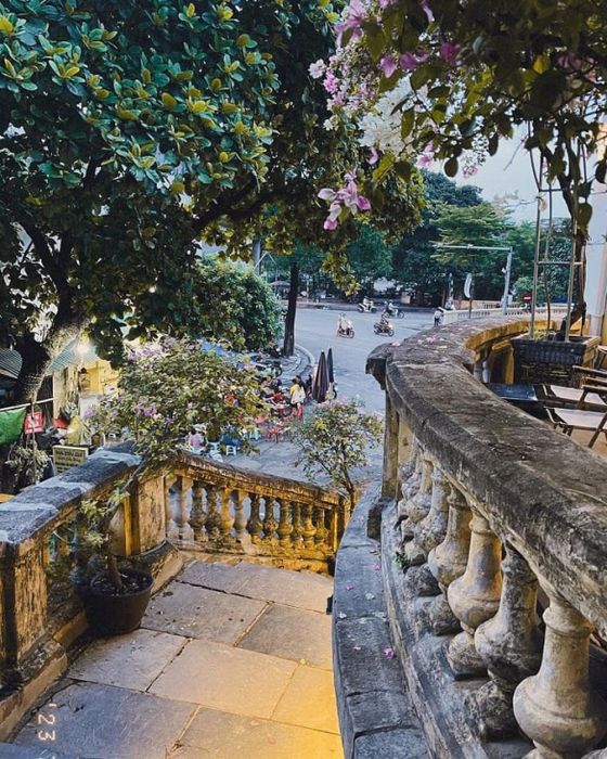 Mỗi góc của quán đều là điểm ảnh ấn tượng với bầu không khí cổ điển của Hà Nội xưa. Tại đây, bạn có thể hiểu rõ hơn văn hóa và lịch sử của Thủ đô. Từ khu vực hành lang với màu sắc rêu phong và hoa giấy lãng mạn đến khung cửa sổ nhìn ra cầu Long Biên cổ kính và đường tàu yên bình dưới ánh hoàng hôn, cảnh tàu đi qua tạo ra không gian tĩnh lặng,...