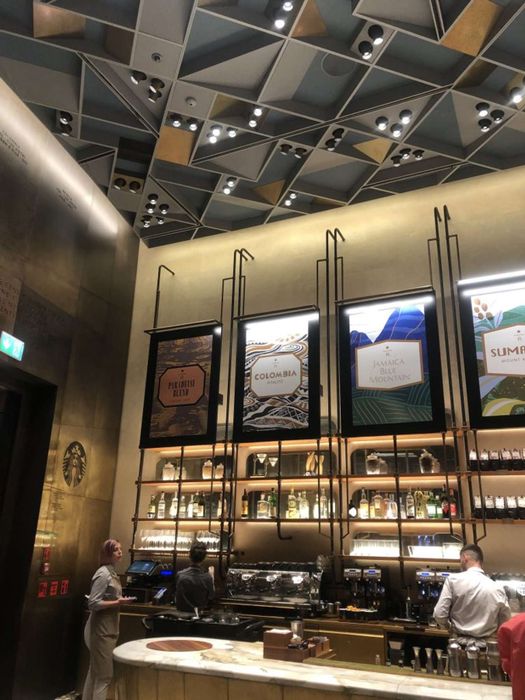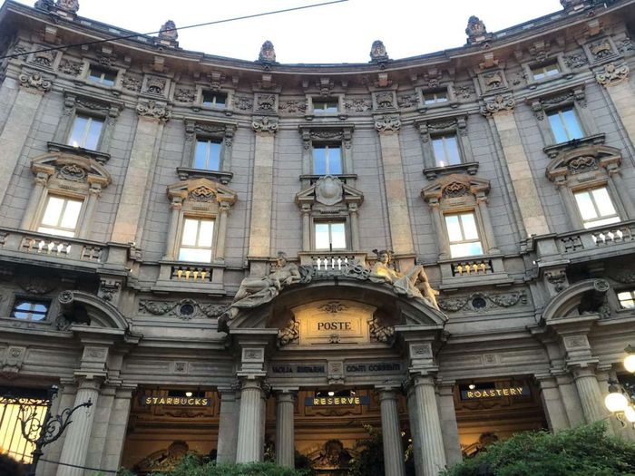 Dọc đường, mình đi qua cửa hàng Starbucks. Đây là cơ sở thứ ba của họ theo phong cách Reserve Roastery trên thế giới. Tòa nhà Poste lịch sử này là nơi Starbucks mở chi nhánh Reserve Roastery đầu tiên tại châu Âu (sau Seattle - Mỹ và Thượng Hải - Trung Quốc).