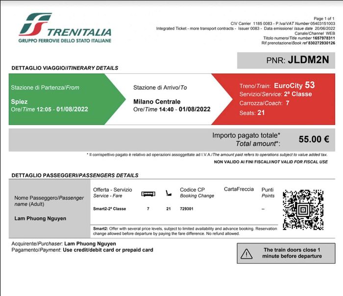 Trải nghiệm dịch vụ tuyệt vời từ trang đường sắt quốc gia của ÝHãy đặt vé sớm cho những chặng đường phổ biến như Milan-Venice để tránh giá tăng cao vào mùa hè