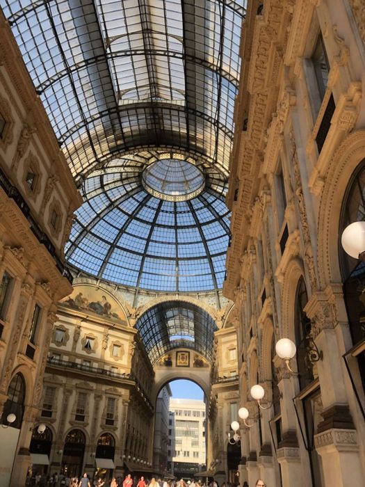 Đây là một kiến trúc to lớn với hàng loạt cửa hàng thời trang nổi tiếng thế giới, cùng với nhà hàng, quán cà phê và các quán bar. Mình trầm trồ nhìn những đường vòm kiến trúc, những cửa hàng đẳng cấp, và đám đông người cầm túi đồ hiệu đi qua. Ở đây, cảm giác như mọi người đều có thể mua đồ hiệu dễ dàng, với mọi người mặc đồ và cầm túi đồ hiệu.