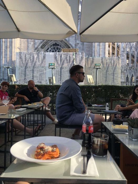 Chụp ảnh tại quán sau bữa ăn, tận hưởng view nhìn ra toà Duomo.