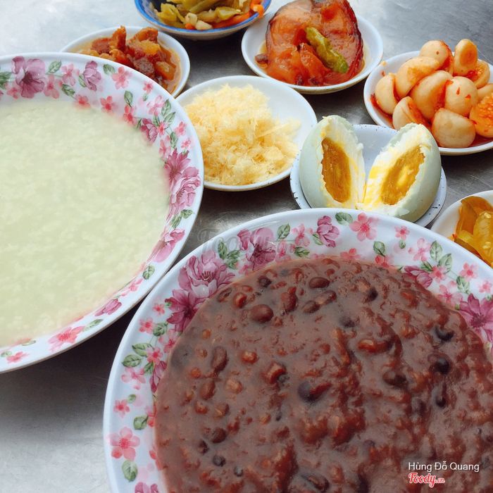 Cháo ở đây có hương thơm đặc trưng của lá dứa, hạt gạo được nấu chín đều như những bông hoa trắng; kèm theo cháo đậu đen và đậu đỏ. Với hơn 20 món ăn mặn để kết hợp: chà bông, ba khía, cá kho, dưa mắm... bạn sẽ ngạc nhiên với sự đa dạng và hấp dẫn của mỗi món.