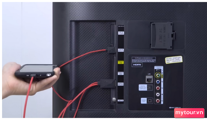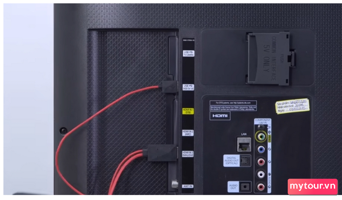 - đây là cáp đặc biệt cho phép truyền dữ liệu từ các thiết bị khác đến tivi. Hãy cắm đầu HDMI và USB vào tivi theo bước này.
