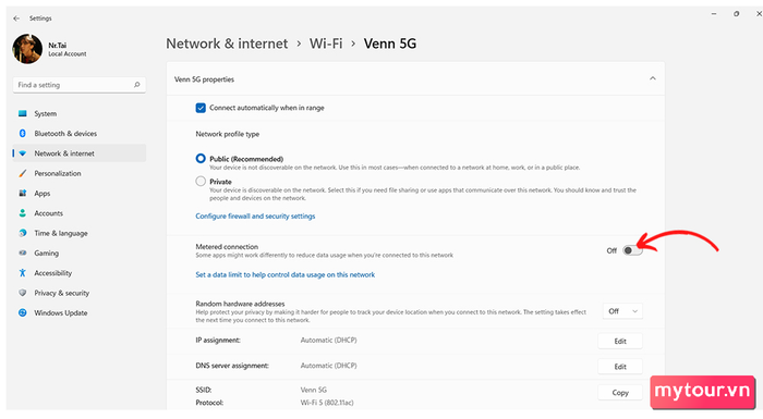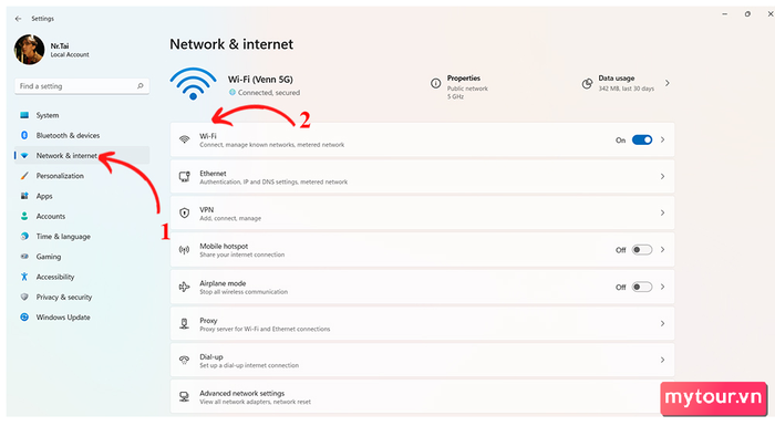 Việc sử dụng chức năng đo lường dung lượng giúp bạn kiểm soát việc sử dụng mạng của mình. Tuy nhiên, đối với một số ứng dụng, việc này có thể khiến kết nối Internet trở nên chậm. Bạn có thể thực hiện bước này theo hướng dẫn sau:Bước 1: Mở Cấu hình bằng cách nhấn tổ hợp phím Window + I. Trong giao diện Cấu hình, Tiếp tục bấm Mạng và internet > Wi-Fi.Tắt ứng dụng đang chạy ẩn