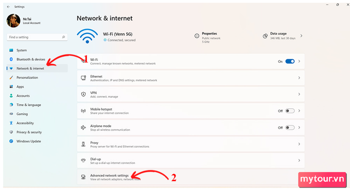 Thử phương pháp đặt lại mạng để tối ưu hóa tốc độ WiFi trên laptop như sau:Bước 1: Mở cửa sổ Cài đặt bằng cách nhấn tổ hợp phím Window + I Tại bàn phím, mở cửa sổ Cài đặt và chọn Mạng & Internet > Cài đặt mạng nâng cao.Duy trì và sửa chữa