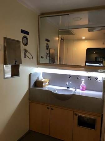 Hệ thống vệ sinh trên tàu được thiết kế theo dạng module, sử dụng công nghệ tiên tiến với bồn rửa mặt có cảm biến, cửa phòng vệ sinh gấp 2 cánh, mang lại sự tiện lợi khi sử dụng.