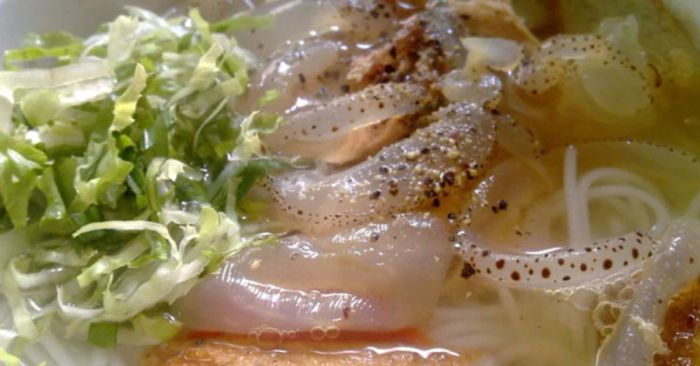 Vị tuyệt vời của tô bún sứa với chả cá hấp, chả cá chiên và miếng sứa giòn rụm. Mỗi miếng sứa nhẹ nhàng tan chảy trong miệng, mang đến cảm giác biển khơi mát lạnh và tươi mới.