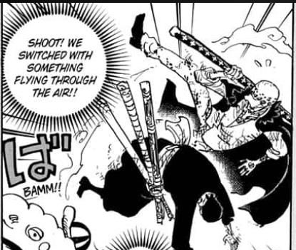Quay trở lại tầng hai, chúng ta có thể nhìn thấy 'anh ba' đang kéo theo Zoro. Trước đó vài phút, Sanji may mắn đón được 2 thằng rơi từ trên trời xuống. Theo chi tiết này có thể thấy, năng lực của Law không đủ để bao phủ toàn bộ lâu đài như chúng ta đã nghĩ.