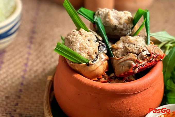 Ốc nhồi cua đồng được trình bày trong niêu đất