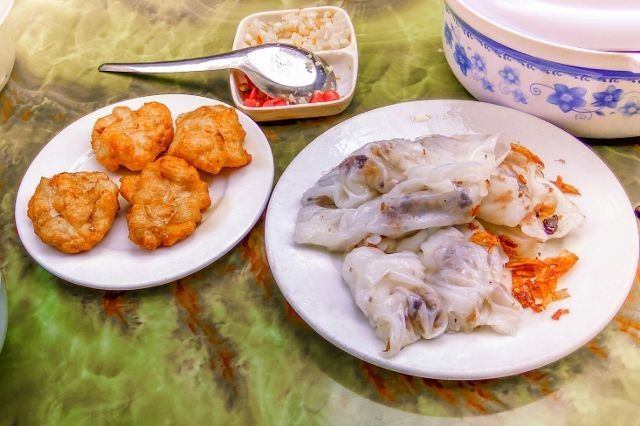 Bữa sáng với bánh cuốn chả mực nóng hổi, nghi ngút khói, và chút chả mực giòn sần sật sẽ làm bạn hài lòng và no bụng.