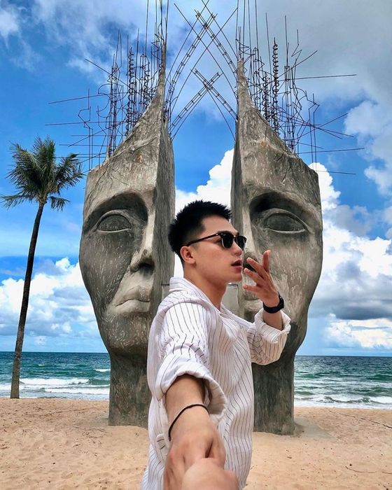 Cổng trời view biển với thiết kế độc đáo, tạo hình mặt người cắt đôi được làm bằng bê tông cốt thép, nhìn xuyên qua là đại dương mênh mông, góc check-in sống ảo cực chất.