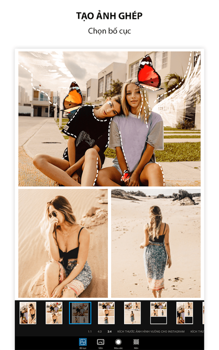 1. Tạo ảnh ghép từ nhiều tấm ảnh một cách nhanh chóng, với nhiều khung ghép sáng tạo cho người dùng lựa chọn.