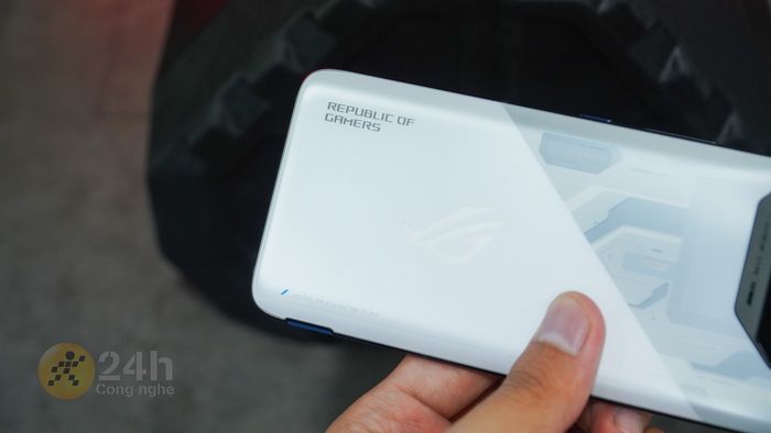 Ấn tượng đầu tiên khi cầm trên tay ROG Phone 7 là vẻ ngoại hình mà ASUS đã thổi hồn vào mặt sau của sản phẩm. Chi tiết cụ thể, bảng mặt lưng của ROG Phone 7 được phủ kính, nửa dưới nhám mịn và nửa trên trong suốt, tạo nên hiệu ứng in sâu rất độc đáo. Điều này khiến tôi cảm thấy như mình đang ngắm nhìn vào bản vẽ nghệ thuật của các linh kiện bên trong. Hơn nữa, ROG Phone 7 có 2 màu sắc độc đáo là Storm White (trắng) và Phantom Black (đen), giúp người dùng có sự lựa chọn phù hợp với phong cách cá nhân.